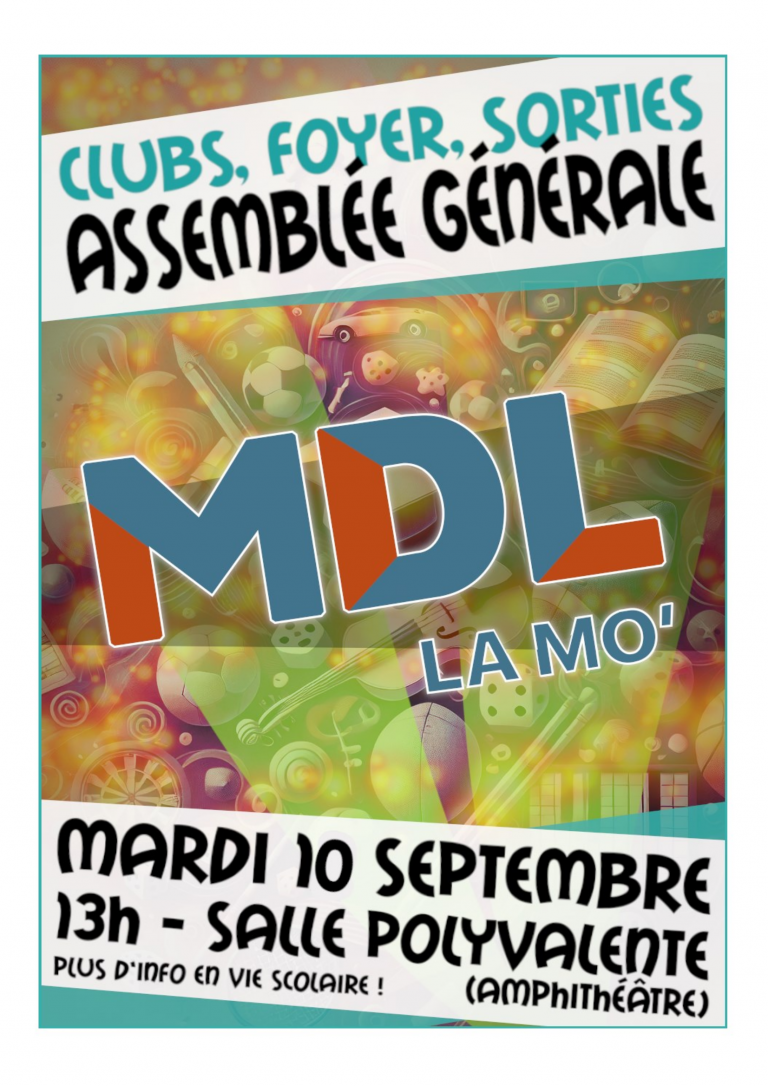 L’Assemblée générale de la MDL aura lieu le mardi 10 septembre 2024 à 13h, en salle Polyvalente. Cette réunion est ouverte à l’ensemble des adhérents de la MDL (ayant payé leur cotisation annuelle).