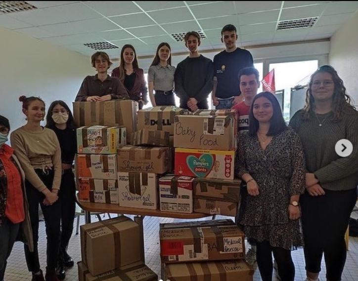 Les élèves du CVL (Conseil de Vie Lycéenne) et de la MDL (Maison des Lycéens) ont participé à la collecte au profit des réfugiés ukrainiens organisée en coopération avec la municipalité de Granville, lundi matin au lycée !