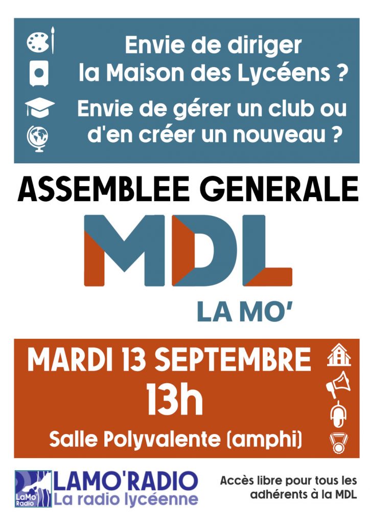 Et on n’oublie pas l’Assemblée générale de la MDL, le mardi 13 septembre 2022 à 13h en salle Polyvalente (amphithéâtre) !